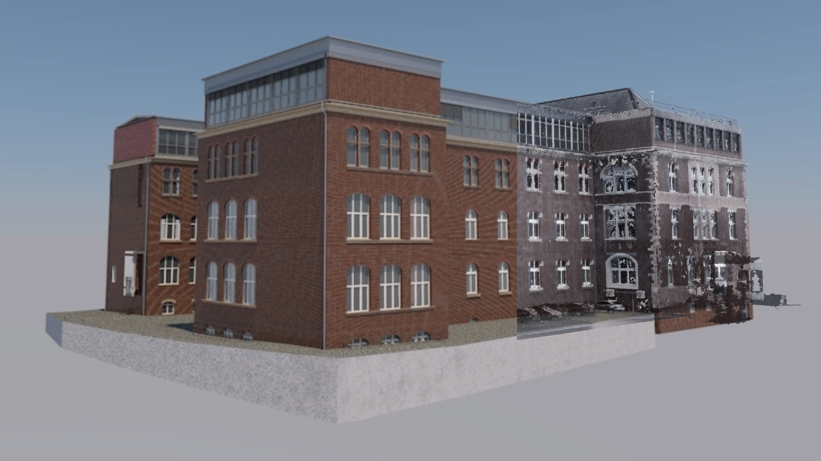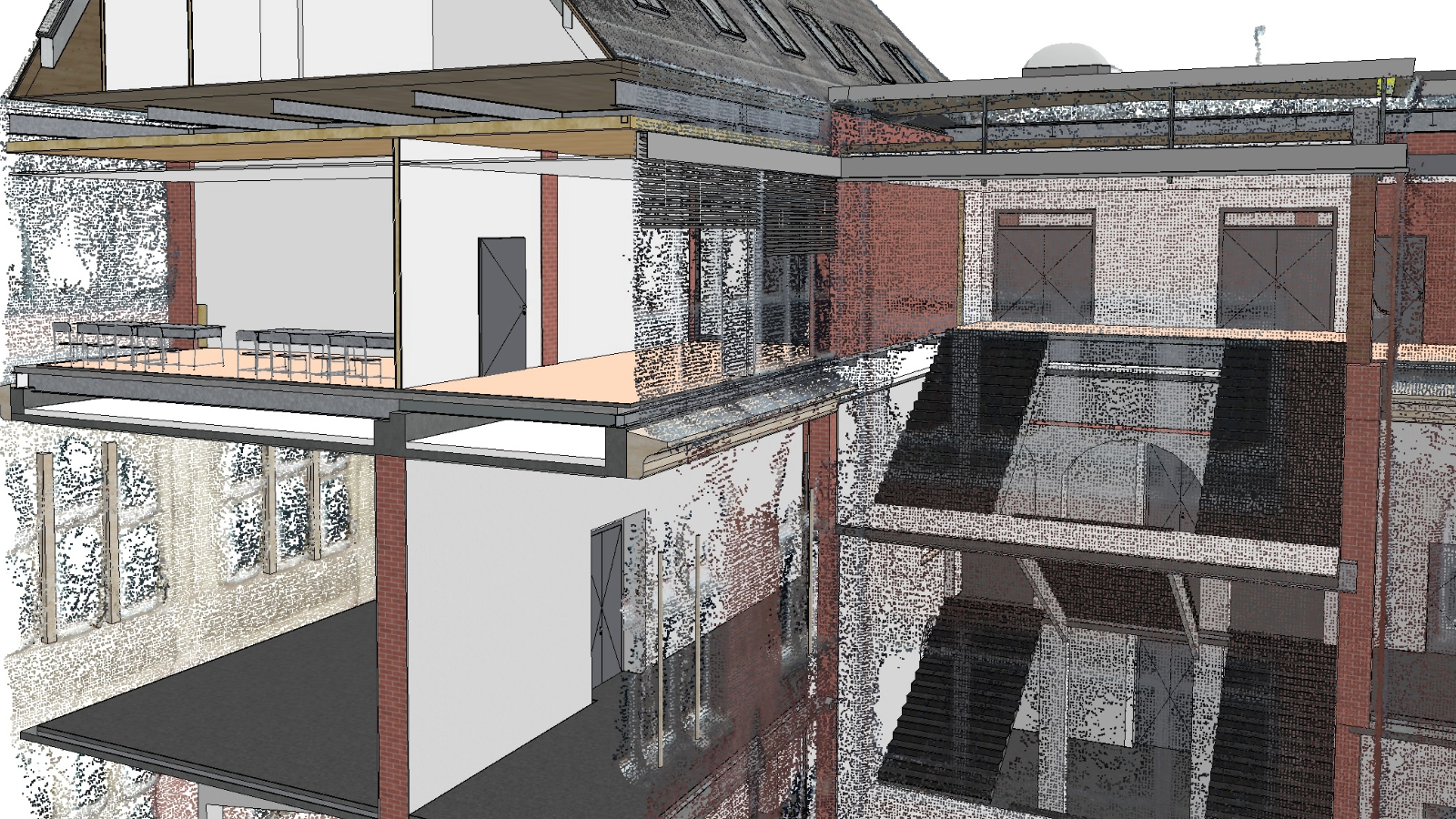 Aus diesen Punktwolken entwickeln wir präzise 3D-Modelle. So können wir bestehende Gebäude detailgetreu darstellen, Umbauten besser planen und unseren Kunden schon früh zeigen, wie ihr Projekt sich später in den Bestand integrieren wird.