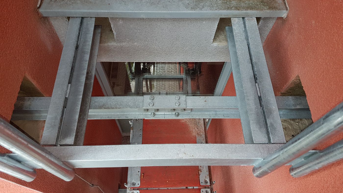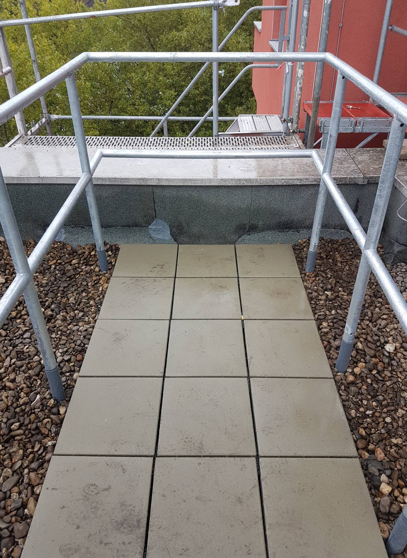 Um die Anleiterbarkeit des 8-geschossigen Studentenwohnheims für den 2. Rettungsweg zu ermöglichen, wurden vor den Fluchtfenstern Balkone angeordnet. Herausforderung sind die Arbeitsabläufe bei beengten Verhältnisse auf der Baustelle.