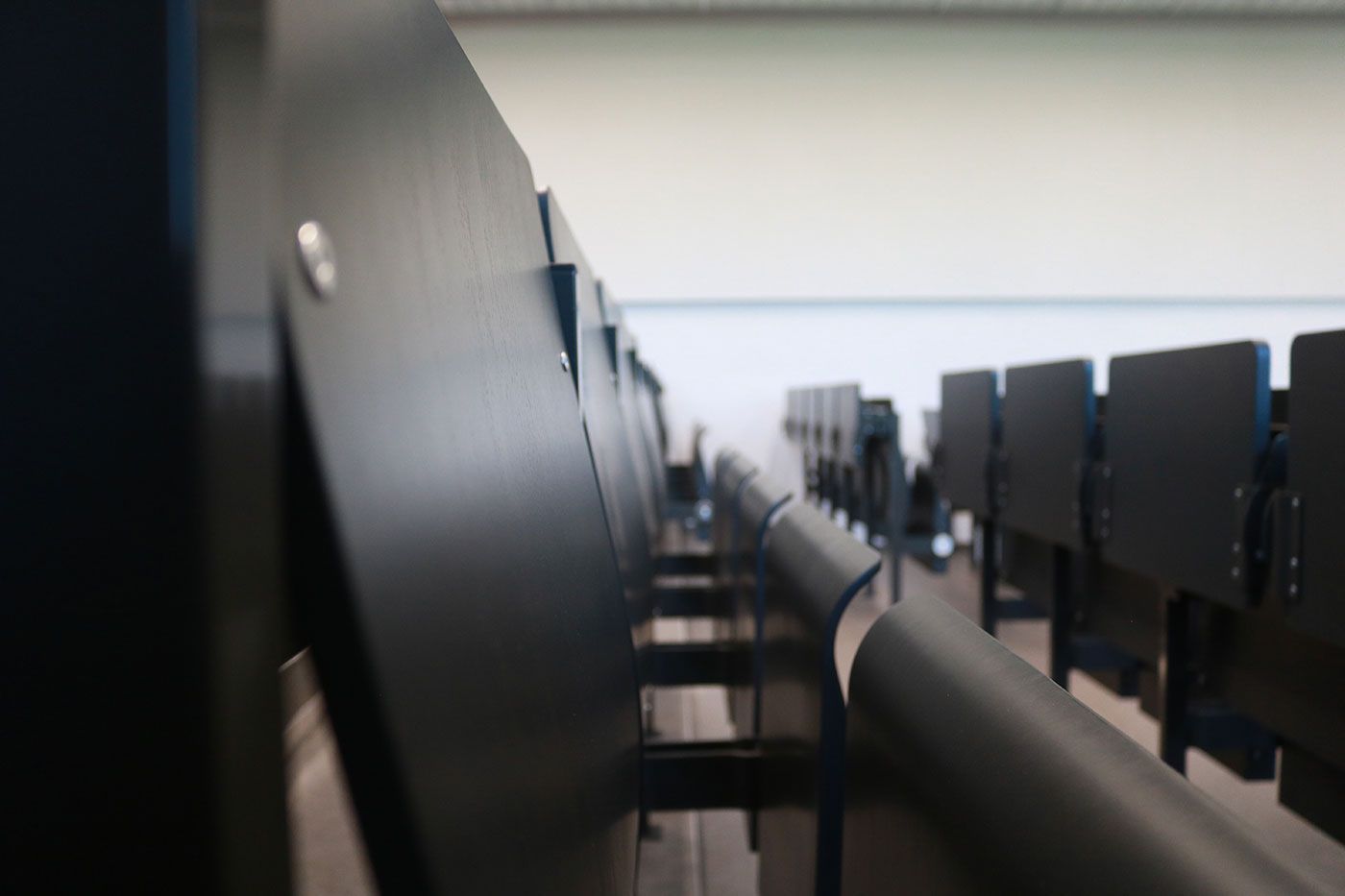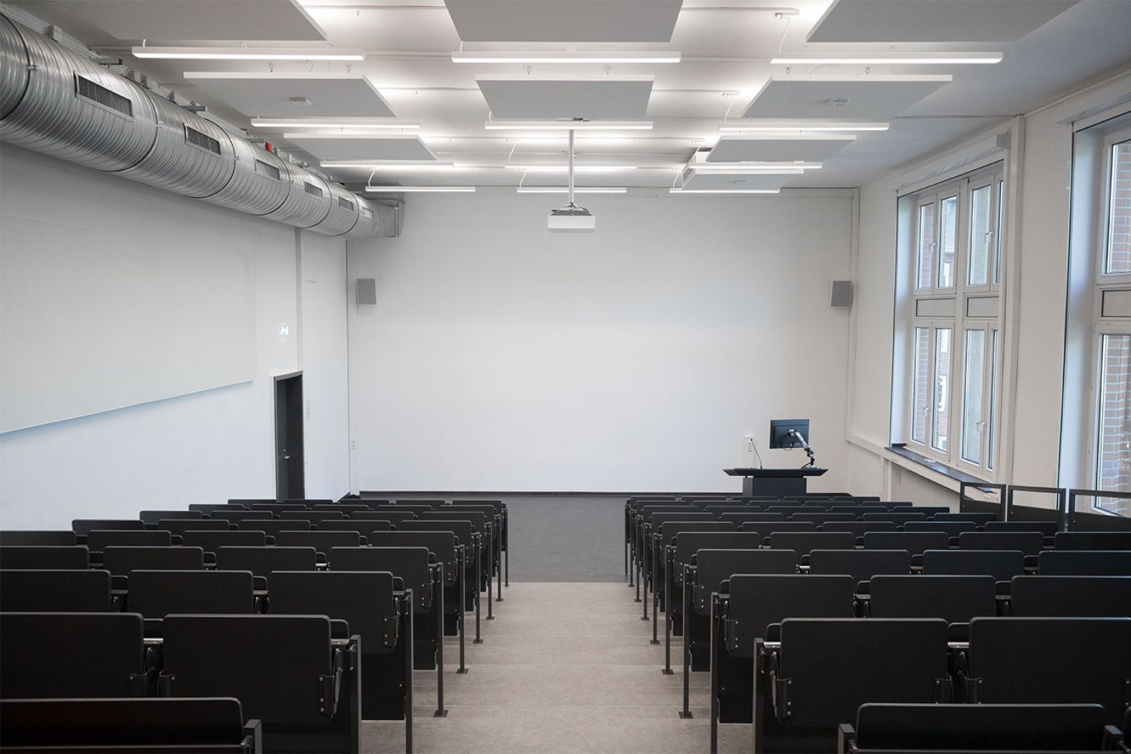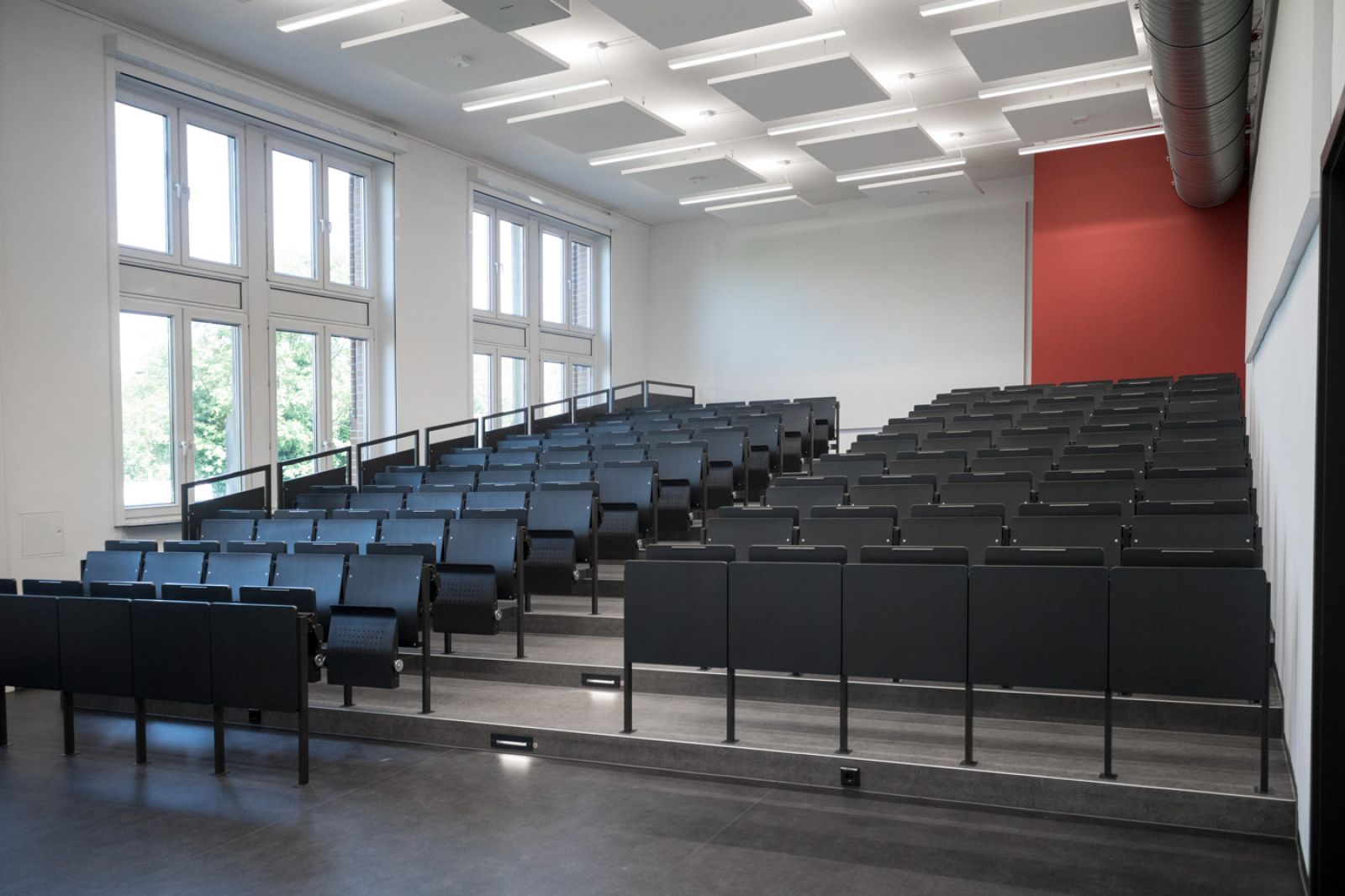 Umbau eines geotechnischen Labors in einen modernen Hörsaal mit steigendem Gestühl mit 100 Plätzen.